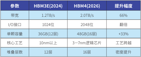 表1:HBM3E與HBM4關(guān)鍵性能對比